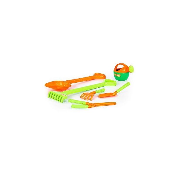 Sada na písek č.606: lopatka velká, hrabičky velké, lopatka, , hrabičky, nůžky, konývka. Baleno v síťce, rozměry balení: 500x185x115 mm /+1 ****