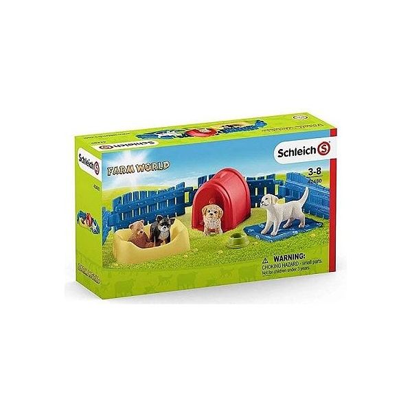 V pokoji pro štěňata si spolu hrají maltipoo, čivava a labradorský retrívr. Co jsou ti tři schopni spolu natropit za rozpustilý nepořádek! Hrají si na měkké dece, přetahují se o plyšového medvěda a hrají si na schovávanou. Občas si zaslouženě schrupnou v psím pelíšku. Malý plůtek brání těm třem zvědavým štěňatům v útěku. Obsah balení: 1x štěně maltipoo, 1x štěně čivavy, 1x štěně labradorského retrívra, 1x psí bouda, 1x psí pelíšek, 1x deka, 1x miska, 1x plyšový medvídek, 5x plot Části plotu lze libovolně spojit a kombinovat se všemi ploty Schleich. Materiál: plast (guma) Výrobce: Schleich Rozměry: 15 x 14 x 5 cm Věk: 3+
