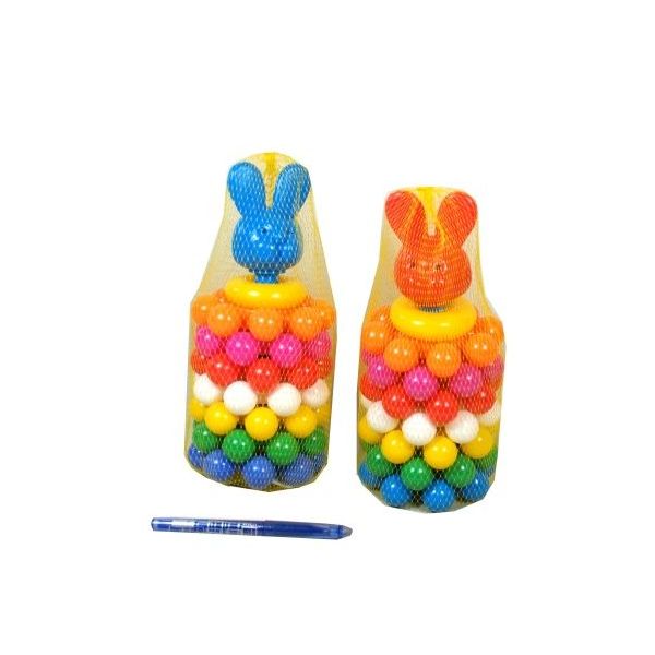 Skládací panák s kuličkami - varianta - zajíček, ass. barev. Materiál: plast 9-dílná pyramida