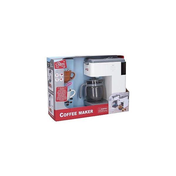 Kávovar s konvicí a tekoucí vodou. Rozměry 20x9x20cm. 2xAA baterie nejsou součástí. světelné a zvukové efekty. obsahuje kávovar, konvici a dva hrnečky. Po naplnění kávovaru vodou do nádržky nahoře vzadu kávovar napouští vodu do konvice. tlačítko on/off. obrázkový návod na obalu. Věk: 3+