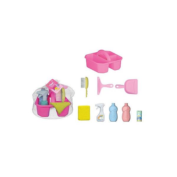 Úklidový set 9ks. Obsahuje vaničku na přenášení, lopatku a smetáček, stěrku, hadřík, čisticí prostředky. Věk: 3+