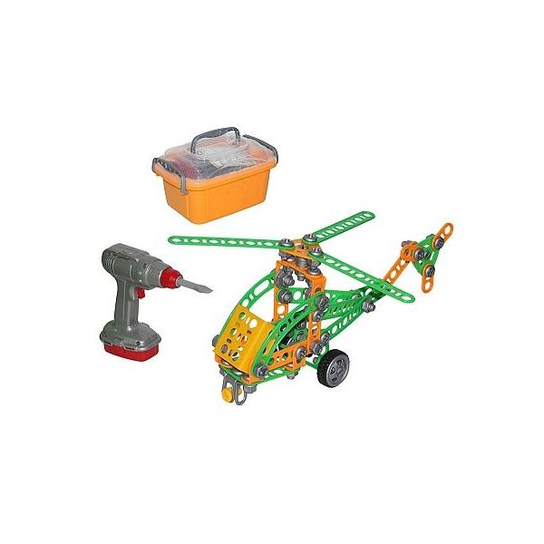 Stavebnice Mladý inženýr, vrtulník č.1 + el. šroubovák /+3. Rozměry: 285 x 195 x 155 mm