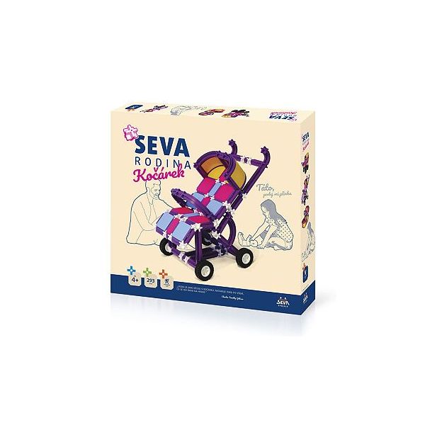 Tati, přebalíme mimčo a pojedeme s ním na výlet. Se stavebnicí SEVA RODINA - Kočárek můžete sestavit kočárky nebo autosedačku pro oblíbeného plyšáka. A nemusíte skládat pouze to. Ve stavebnici SEVA se fantazii meze nekladou. Věk: 4+"