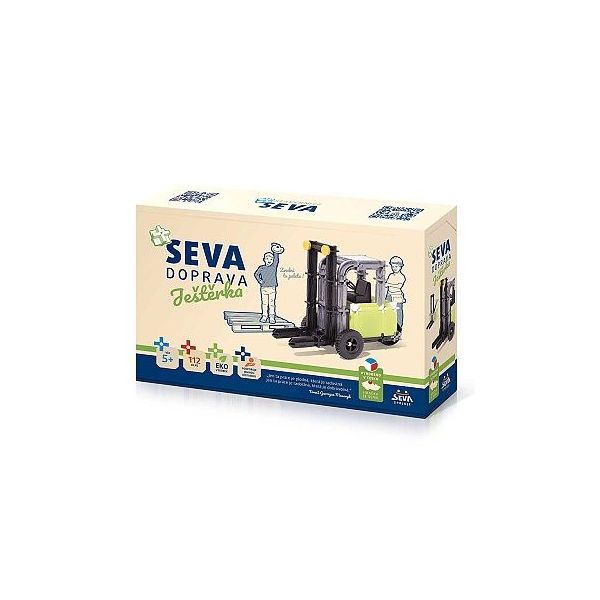 Vysokozdvižný vozík, manipulační zařízení anebo lidově Ještěrka. Ze 112 dílků, které v balení najdete si podle přiloženého návodu můžete sestavit nejen to. SEVA DOPRAVA – Ještěrka je doporučená pro děti od 5 let. Kdo chce řídit nákladní auto, letadlo, malý traktůrek či jiné auto, má se stavebnicí SEVA jedinečnou možnost postavit si nejrůznější modely. Ohromnou výhodou stavebnice SEVA je, že je ji možné kombinovat s ostatními stavebnicemi a rozšiřovat tak její možnosti. Věk: 5+