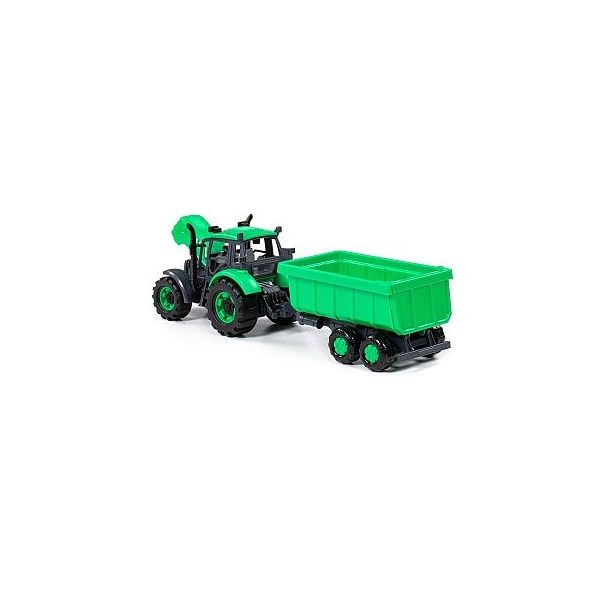 Traktor Progres" s přívěsem, na setrvačník, zelený , baleno v krabici. Rozměry balení: 395 ?120 ?150mm /+3 ***"