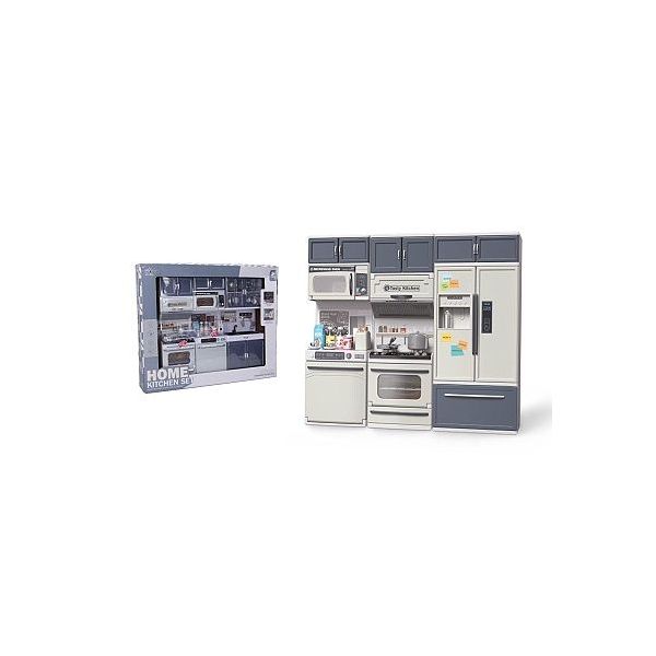 Větší kuchyňka s efekty, která nabízí více prostoru a funkcí pro kreativní vaření a hraní. Rozměry 34x7x30 cm. Světelné a zvukové efekty tlačítkem na sporáku. 3xAG13 baterie do sporáku součástí. Obsah - trouba se sporákem, odpařovač, myčka, mikrovlnka, dřez, skříňky, topinkovač, nádobí, jídlo, nápoje. Věk: 3+