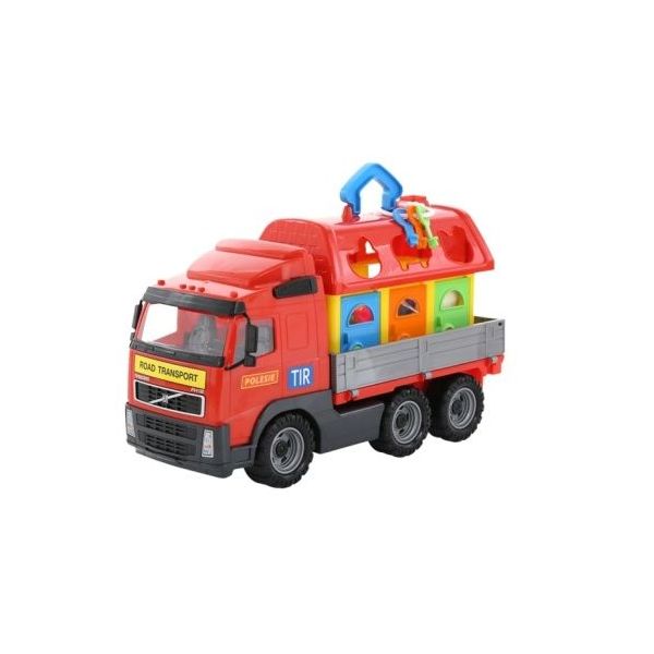 Auto plošinové + Didaktický domek pro zvířátka. Baleno v síťce, rozměry: 450 x 190 x 280mm /+1