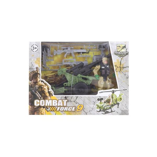 Vojenská sada. Balení obsahuje vojáčka, kanón a další doplňky. Rozměr balení cca 23 x 17 x 6,5 cm. Věk 3+