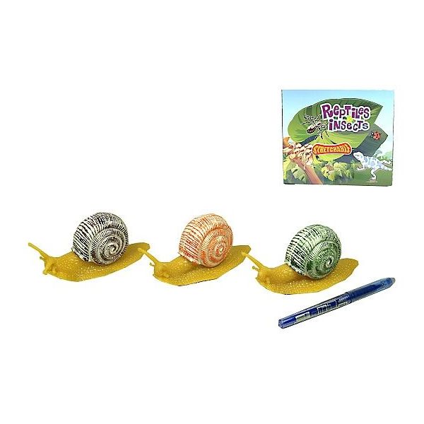 Šnek s ulitou, 12 ks v display boxu. Šnek ve 3 barevných provedeních. Hračka je vhodná pro děti od 3 let.