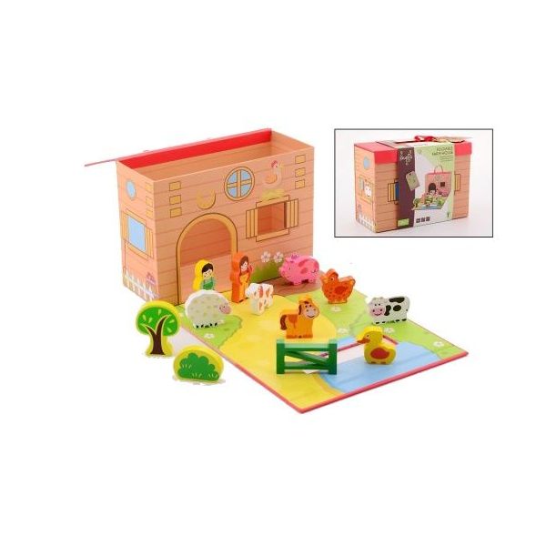 Dřevěná farma se zvířátky v praktickém kufříku. Kvalitní dřevěná hračka vyrobena z masivního bukového dřeva. Rozměry balení: 11 x 18 x 25 cm Věk: 1,5+