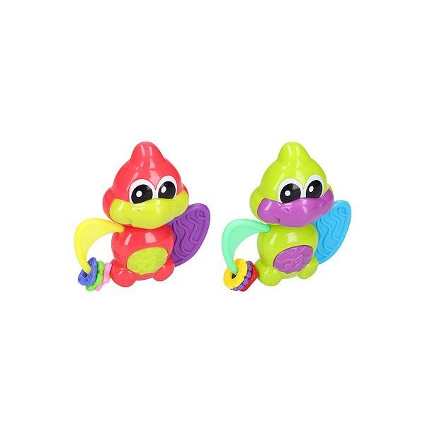 Maamaa Dino. Světelné a zvukové efekty stlačením bříška. 3xAG13 baterie součástí. Přepínač ON/OFF na spodní straně. Věk: 3m+